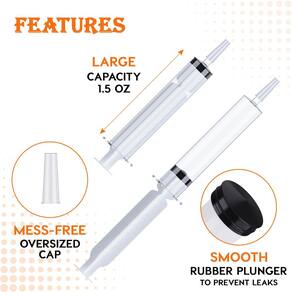 - Ótimo custo-benefício: inclui 50 unidades de seringas de plástico duráveis e laváveis de 42,5 g; cada seringa terá uma rolha de borracha preta para eliminar a possibilidade de as seringas vazarem e bagunçarem
