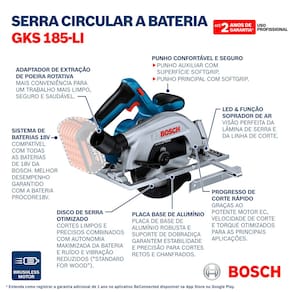 A serra circular à bateria Bosch GKS 185-LI possui um desempenho impressionante devido ao motor Brushless, sem escovas de carvão, que oferece mais vida útil e o dobro de autonomia. Seu tamanho compacto e peso mais leve permite um uso facilitado para cortes mais precisos e limpos combinados com autonomia maximizada da bateria! Além disso, a serra circular à bateria Bosch GKS 185-LI tem um baixo ruído e vibração para um trabalho mais confortável. Ideal para cortes retos em madeiras e indicado para marceneiros, carpinteiros, instaladores, renovadores, artesãos, encanadores e outros. Compatível com todas as baterias 18V Bosch. Garantia 1 ano Bosch.