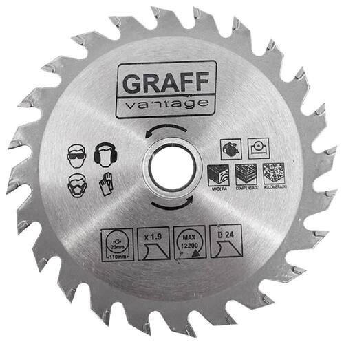 Serra Circular com Pastilha de Metal Duro para Madeira 4.3/8''x24d 579,0001 - Graff Vantage, para compensados e aglomerados, com pastilhas de metal duro para corte em madeira. Marca: Graff
