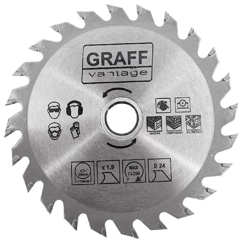 Serra Circular com Pastilha de Metal Duro para Madeira 4.3/8''x24d 579,0001 - Graff Vantage, para compensados e aglomerados, com pastilhas de metal duro para corte em madeira. Marca: Não Informado