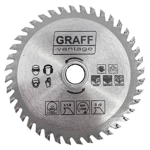 Serra Circular com Pastilha de Metal Duro para Madeira 4.3/8''x40d 579,0002 - Graff Vantage, para compensados e aglomerados, com pastilhas de metal duro para corte em madeira. Marca: Graff