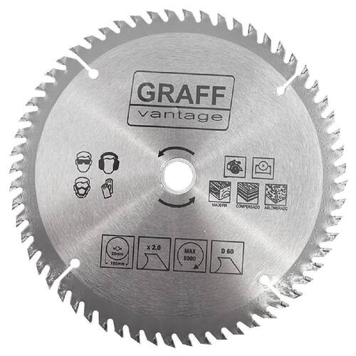 Serra Circular com Pastilha de Metal Duro para Madeira 7.1/4''60D 579,0005 - Graff Vantage, para compensados e aglomerados, com pastilhas de metal duro para corte em madeira. Marca: Graff