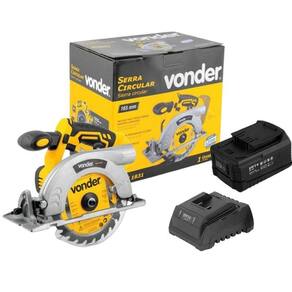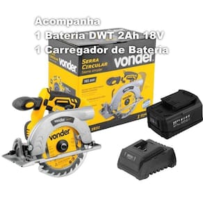 Este equipamento utiliza um modelo de bateria que pode ser intercambiável , ou seja, uma bateria que é compatível com outros modelos de ferramentas a bateria vonder. Por isso, em sua próxima compra de ferramenta a bateria vonder, procure por um modelo que comece com a referência i, ou que esteja identificado com o selo bateria intercambiável vonder. Desta forma, você garante modelos mais econômicos, sem a necessidade de aquisição de novas baterias e carregadores para uso em seu equipamento. Possui ajuste de profundidade de corte e regulagem de ângulo de até 50. Indicada para cortar somente madeiras e derivados. Baterias indicadas: 60.04.180.400 4,0 ah e 60.04.185.000 5,0 ah . Carregadores indicados: icbv 1806 - 60.04.180.600 carregamento rápido , icbv 1805 - 60.04.180.500 carregamento convencional ,
