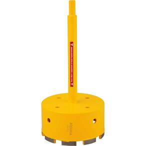 Conteúdo da Embalagem: 1 Serra copo diamantada com haste e pino guia. Possui corpo reforçado em aço e segmento diamantado prensado a quente, proporcionando maior durabilidade. Facilita a realização de furos de grandes diâmetros em tempo reduzido. Indicada para cortar telhas, tijolos, cerâmicas, azulejos, granitos entre outros. Quando utilizada com o pino guia, deve-se fazer um furo com broca de vídea antes. Nunca utilizar o equipamento na função IMPACTO/MARTELETE. Não indicada para porcelanato. Diâmetro:110,00 mm Altura útil aproximada:58,00 mm Material da serra copo:Corpo metálico com dentes diamantados (Aço carbono C45). Comprimento total da haste:170,00 mm Diâmetro do encaixe da haste:9,50 mm Altura da camada de diamante:6,00 mm