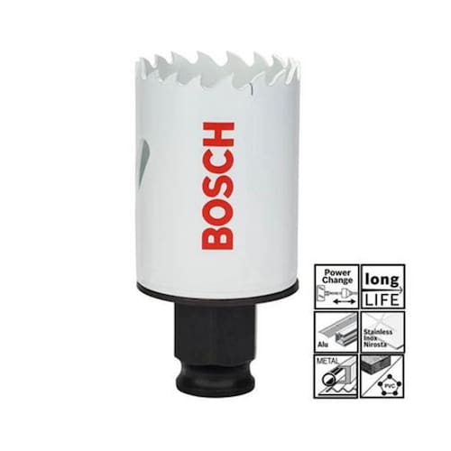 Serra Copo 32mm Progressor for WoodMet 2608594207000 A Serra Copo Progressor for wood and Metal é uma serra copo durável para cortes rápidos em madeira e metal; A tira de dente progressiva oferece um desempenho de corte ideal e uma remoção rápida de material; Feita de HSS aço rápido bimetálica contendo uma liga de 8% de cobalto, resultando em uma resistência extrema e uma maior durabilidade. Utilize esta serra copo para cortar madeira, metal e plásticos. Ela pode ser Utilizado com todas as parafusadeiras com e sem fio. A Serra Copo Progressor for Wood and Metal vem com o exclusivo adaptador power-change da Bosch, que é o sistema de troca mais rápida do mercado. Ela permite travar e destravar a serra copo e as brocas piloto com apenas um clique. Diâmetro: 32 mm Material:hss Bimetal Modelo:power change Ean: 3165140949767