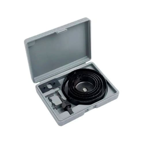 Jogo de serra copo para madeira em aço carbono com 1" (25mm) de altura. Jogo com 8 peças, contem 5 lâminas nas medidas: 64mm, 76mm, 89mm, 102mm e 127mm de diâmetro.