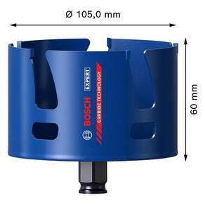 A serra copo Bosch EXPERT Construction Material corta rapidamente vários tipos de materiais como madeira, tijolos, plásticos e drywall. Conta com ranhuras em forma de gota para remover aparas de maneira eficaz para uma perfuração rápida e contínua. Os dentes robustos com a Carbide Technology da Bosch oferecem à serra copo um ritmo de perfuração excepcionalmente rápido e mais durável. A serra copo Bosch EXPERT Construction Material inclui o adaptador do sistema Power Change exclusivo da Bosch com a troca mais rápida do mercado. Permite a troca da serra copo e brocas guia com um clique. É adequado para utilizar com todas as furadeiras e parafusadeiras a cabo ou bateria. Garantia 6 meses Bosch.- Dura até 50 vezes mais que a serra copo de aço Carbono Tradicional da Bosch- Durabilidade excepcional com a tecnologia Carbide da Bosch.- Rápida remoção das aparas através da abertura lateral em forma de gota- Ideal para cortar madeira, tijolos, plásticos e drywallItens inclusos: 1 Serra copo EXPERT Construction Material 105 mm, 4 1/8Especificações técnicas:- Diâmetro: 105mm - Polegadas do diâmetro: 4 1/4- Comprimento útil: 60mm