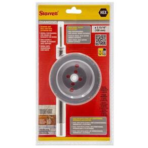 Serra Copo Diamantada 100mm Com Haste 150mm De100m Starrett Características: Serra copo diamantada 100mm 3.15/16 Diamante industrial - alta performance. Haste de 150mm com encaixe hexagonal, acompanha o produto na versão com haste. Pino guia para furos que exigem mais precisão. Encaixe hexagonal no mandril permite retirar a serra após o uso . Possibilidade de utilização dos suportes de linha da Starrett® Mais rápida e com longa vida útil Fácil retirada do cavaco através dos canais Menor esforço do operador, economiza mais bateria Profundidade de corte de 38mm 1.1/2" Feita com diamante industrial de alta qualidade Não utiliza coroa soldada. Peça única com diamantes nos dentes, que evita a soltura da coroa, que proporciona maior segurança e maior vida útil ao produto. Além dos furos laterais, que facilitam a retirada da bolacha em alguns tipo de corte, a construção do modelo Starrett facilita a retirada sem o auxilio de uma chave de fenda Os canais para soltar a bolacha facilitam o trabalho e agiliza o tempo na obra Produto mais leve, gernado ganho em produtividade e menor fadiga do usuário Instruções de uso: Porcelanato e Pedras aplicação com refrigeração : Corte com lubrificação Uso dos suportes normais de linha para maior estabilidade, evitanto vibração Alvenaria e blocos estruturais aplicação sem refrigeração : Corte a seco Não indicada para lajes e concretos com vergalhão Desligar Martelete: Função martelete deve ser desligada, para evitar danos ao material cortado e desgaste do diamante. Marca: Não Informado