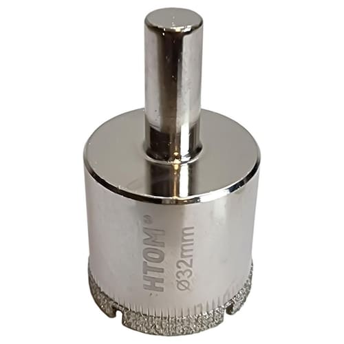 - marca: htom - referência: htom-41406 - diâmetro de corte: 32mm - comprimento do copo: 31mm - comprimento total: 55mm - diâmetro da haste: 9,5mm - fabricada em aço com área de corte em diamante - serra copo diamantada projetada para furos em vidro, espelho, mármore, azulejos, piso, cerâmica, granito, porcelanato, entre outros - corte preciso, seguro e um pronto acabamento, é recomendado o uso com água - produzido em material de grande resistência e durabilidade - abertura lateral para remoção de resíduos - qualidade profissional - facilidade no manuseio - pronto acabamento - rapidez na perfuração - ideal para uso em furadeiras elétricas - confeccionada em aço rápido polido com ponta diamantada que confere maior resistência e durabilidade - revestimento a pó de diamante - fornece perfuração precisa sem danificar, é adequada para - garantia: 90 dias contra defeitos de fabricação