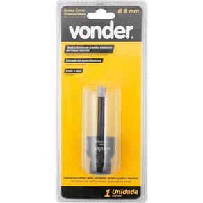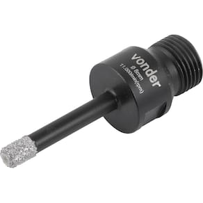 Serra copo diamantada para uso em telhas, tijolos, cerâmicas, azulejos, granito, mármore. Indicada para uso em esmerilhadeira com rosca interna M14 e rosca externa 1/2" BSP para máquinas estacionárias em marmoraria