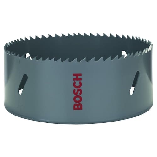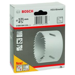 Serra copo hss-bimetal 121mm bosch 2608584134 descrição: serra copo em bimetal hss com adição de cobalto para adaptador standard 121 mm, 4 3/4. Características: a serra copo em bimetal encaixa em todos os adaptadores standard no mercado, ela efetua o corte com rapidez em vários materiais. A configuração do dente tira de dente vario é ideal para deslizar através do material para fazer cortes rápidos e precisos. Feita de hss bimetal aço de corte rápido com 8% de liga de cobalto, esta serra copo apresenta um risco menor de quebra de dente e maior resistência ao calor para um corte de longa duração. Utilize esta serra copo ao cortar madeira, metal, inox e plásticos. Todos os nossos produtos são novos, e possuem garantia do fabricante. Serra copo hss-bimetal 121mm 2608584134 bosch