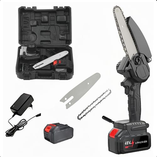 Transforme suas atividades de jardinagem e corte com a mini serra elétrica 48v portátil bivolt. Projetada para proporcionar uma experiência ergonômica e confortável, esta motosserra é perfeita para cortes e podas em qualquer lugar, especialmente em áreas de difícil acesso. Com um motor escovado potente, garante um desempenho eficiente e rápido, minimizando o cansaço nas mãos. Ideal para serviços domésticos, jardinagem e podas simples, a mini serra elétrica oferece praticidade e mobilidade sem a necessidade de arrastar fios, graças à sua bateria inclusa.