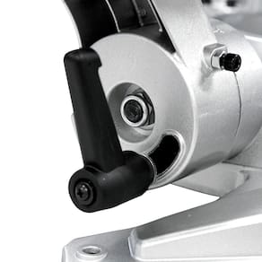 Indicada para cortar madeiras e derivados. Utilizando a lâmina apropriada (não acompanha), também pode cortar cantoneiras e esquadrias de alumínio com espessura máxima de 3 mm em operações leves e médias. Possui base giratória para cortes em ângulo de 45 para ambos os lados. Braço (cabeça de corte) com botão para regulagem de inclinação de até 45 para a esquerda, cabo com revestimento emborrachado e eixo com protetor de lâmina. Contém braço telescópico e mesa extensora que permitem cortar peças com dimensões maiores e com os mais variados ângulos.