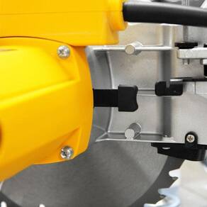 Possui base giratória para cortes em ângulo de 45 para ambos os lados, braço (cabeça de corte) com botão para regulagem de inclinação de até 45 para a esquerda, cabo com revestimento emborrachado e eixo com protetor de lâmina. Contém braço telescópico e mesa extensora que permitem cortar peças com dimensões maiores e com os mais variados ângulos.