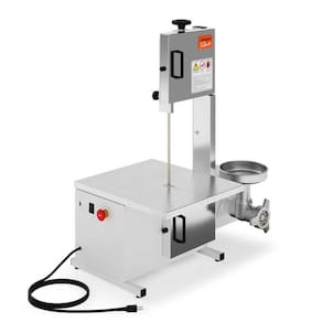 - Serra-fita de bancada, indicada para uso doméstico; - Motor WEG de 1/2cv, bivolt; - Mesa de corte e portas em aço inoxidável; - Carenagem e estrutura em aço com pintura epóxi branca; - Volantes em ferro fundido; - Moedor/Picador de carne em ferro fundido Boca 08; - Projetado de acordo com norma de segurança NR12.