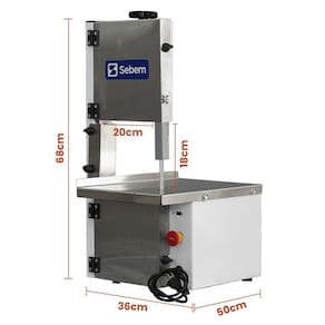 especificações técnicas da serra de cortar carne pequena industrial bivolt sebem: medidas do produto cm : 68x36x50 medidas da mesa cm : 30x40 área de corte cm : 18x20 peso: 21 kg