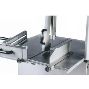 Características Técnicas: Botão de emergência posicionado na frente do operador com freio eletrônico Sistema de proteção sensorizadas nas tampas dos volantes Polias produzidas em ferro fundido e volantes em alumínio Fácil instalação e utilização do equipamento Produzida em aço inox 430 Motor: 1,1 kW (1,5CV) Altura da mesa para cabeçote superior: 38 cm Altura máxima mesa para encosto protetor: 27 cm Dimensões da mesa (LxC): 63,5 x 75,5 cm Espaço entre coluna e fita: 27 cm Altura para mesa: 87 cm