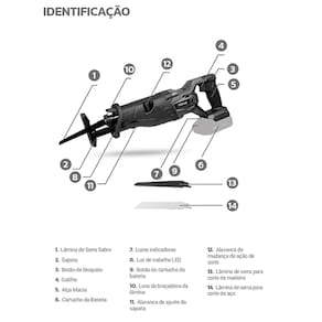 Indicação: Esta ferramenta deve ser utilizada para cortar madeira, plástico e materiais ferrosos.