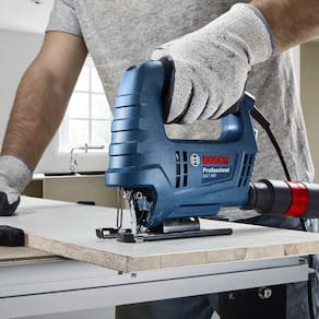 A serra tico-tico GST 680 Professional dá confiança extra no trabalho diário com mais potência, precisão, conforto e menos esforço, com seu motor potente de 500 W, uma experiência de corte mais rápida e facilmente alcançada. Enquanto a função de pré-seleção da velocidade permite cortar, sem esforço, múltiplos materiais com desempenho otimizado e ajustável, o design da alça ergonômica oferece uma ótima experiência de manuseio, utilizando borracha mais macia para longas horas de trabalho sem fadiga. A serra tico-tico com fio corta facilmente madeira, metal e outros materiais. Ela pode cortar curvas e formas redondas com a mesma facilidade que linhas retas, é ideal para o corte preciso de formas para instaladores de armários, carpinteiros e marceneiros.