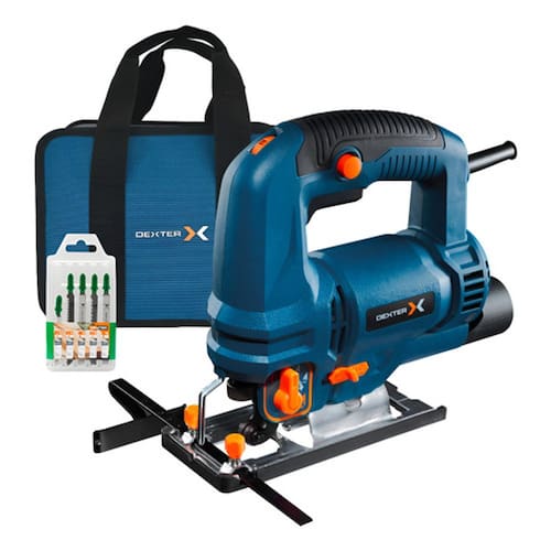 Resumo das principais caracteristicas: - Marca: Dexter - Modelo: 750JS3-100.52B1 - Material a ser trabalhado: Aco e Madeira - Alimentacao: Eletrica - Tensao Eletrica: 220V - Potencia: 750 W - Possui Controle de Velocidade: Sim - Velocidade: 3000 rpm - Golpes por Minuto: 20 GPM - Capacidade de Corte: 100 cm - Profundidade do Corte em Milimetros: De 75 a 100mm - Produto Acompanha Embalagem: Sim - Conteudo da Embalagem: 2 Serra Tico Tico + Bolsa de Lona + Kits de Laminas Dexter (5 PECAS) - Garantia do Fabricante: 60 mes(es)