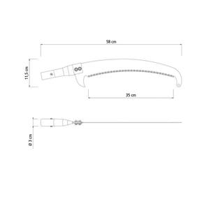 Está precisando de uma mãozinha com a poda de galhos? O Serrote com Gancho Tramontina em Aço sem Cabo é o item perfeito! Uma serra com lâmina em aço carbono com gancho que auxilia na hora da serragem, evitando com os galhos escapem e oferecendo maior precisão ao corte. Um serrote recomendado para diversas atividades ao ar livre, desde o auxílio em tarefas de camping até cuidados com seu jardim! Orientações - Lâmina em aço carbono flexível e de alta durabilidade.- Comprimento da lâmina de 14" / 355 mm.- Dentes com 3 arestas de corte.- Perfil dos dentes projetado para cortar nos dois sentidos de movimento: assegura um corte limpo e sem rebarbas. Facilita a cicatrização do galho.- Elevado grau de afiação dos dentes: confere precisão de corte e dispensa retoques periódicos.- Cabo metálico.- Permite adaptação de cabos extensores. Observações - O serrote é próprio para poda em jardins e como auxiliar nas tarefas de camping.- Conserve a ferramenta limpa, secando-a depois de lavá-la. Aplique fina camada de óleo sobre as lâminas e articulações.- Cuidado: A lâmina é afiada. O contato pode resultar lesões. Manuseie com cuidado e mantenha fora de alcançe das crianças.- Para descarte dos produtos e embalagens siga as orientações de reciclagem vigentes. Características Gerais EAN13 7891117064121 DUN14 17891117064128 NCM 8202.10.00 Peso Líquido 0,3170 kg. Peso Bruto 0,3540 kg. Metragem 0,001630 m³. Dimensões Embalagem (Compr. X Larg. X Alt.) 555x 100x 32 mm. Dimensões Produto (Compr. X Larg. X Alt.) 580x 30x 115 mm. Cor 1 EBEBEB Hexa