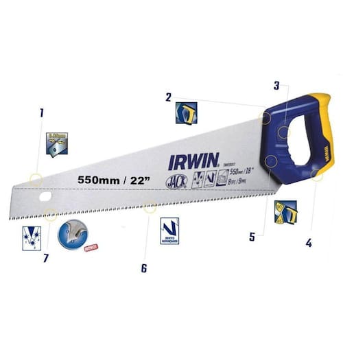 Serrote Fast Jack 550mm/22 pol. IWHT20379 - Irwin Características Lâmina e Dentes em Aço Temperado com Afiação Triplo Corte, com Comprimento de 22 - 550mm Ideal para Cortes em Madeiras duras e Macias, a Ferramenta Oferece mais Ergonomia, Qualidade e Velocidade