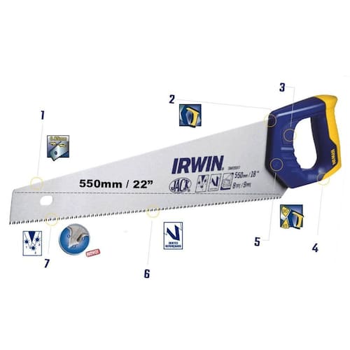 Serrote Fast Jack 550mm/22 pol. IWHT20379 - Irwin Características Lâmina e Dentes em Aço Temperado com Afiação Triplo Corte, com Comprimento de 22 - 550mm Ideal para Cortes em Madeiras duras e Macias, a Ferramenta Oferece mais Ergonomia, Qualidade e Velocidade
