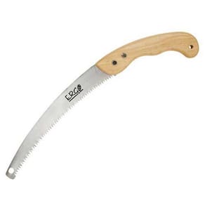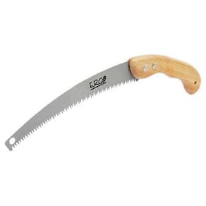 CARACTERÍSTICAS: Serrote curvo para poda manual com cabo em madeira de cor cromado.