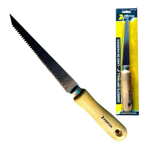 Indicado para cortar gesso e drywall o serrote conta com ponta que auxilia na perfuração de chapas facilitando o trabalho.