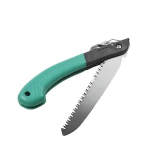 Serrote dobrável de poda. Para cortar e aparar galhos e ramos. Lâmina de aço e cabo plástico. Comprimento total 40 cm. Comprimento da lâmina 18 cm. Sistema de trava por mola manual. Somente na cor verde. Não acompanha nenhum acessório. Validade indefinida. Marca: Não Informado Ean: 7897323357705