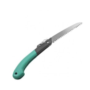 Serrote dobrável de poda. Para cortar e aparar galhos e ramos. Lâmina de aço e cabo plástico. Comprimento total 40 cm. Comprimento da lâmina 18 cm. Sistema de trava por mola manual. Somente na cor verde. Não acompanha nenhum acessório. Validade indefinida. Marca: Não Informado Ean: 7897323357705