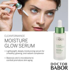 Sérum BABOR CLEANFORMANCE Moisture Glow, sérum facial que equilibra o microbioma com pigmentos refletores de luz para dar brilho radiante à pele, ácido hialurônico e aloe vera para pele gorda e hidratada, 1 onça