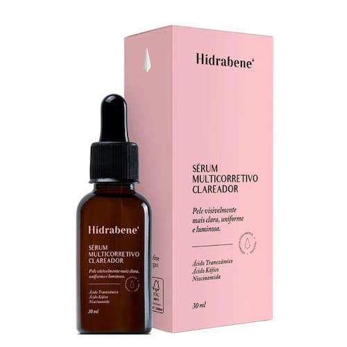 Hidrabene Sérum Multicorretivo Clareador foi formulado com uma rica composição de ativos para clarear visivelmente a pele e reduzir a tonalidade de regiões hiperpigmentadas.