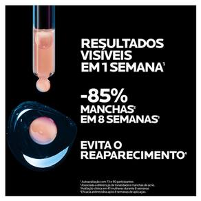 Resultados visíveis em 1 semana, reduzindo e prevenindo o reaparecimento com eficácia comprovada em todos os tons e tipos de pele, inclusive as oleosas.