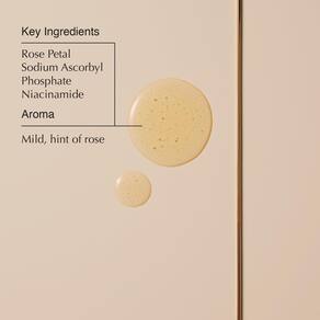 - Ingredientes principais: pétala de rosa, fosfato de ascorbil sódico (vitamina C), niacinamida (vitamina B3).