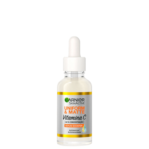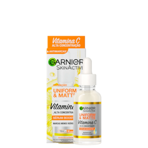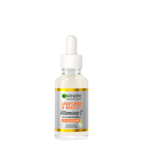 Sérum facial antimarcas. Garnier Uniform & Matte Vitamina C garante marcas menos visíveis, pele uniformizada, hidratada e com efeito matte.