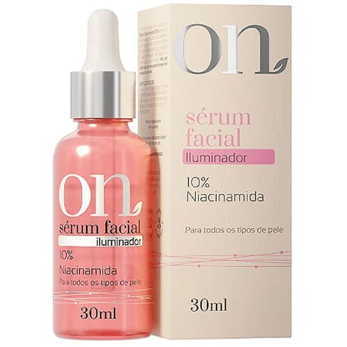 Sérum Facial Iluminador com Niacinamida 30mL ON Sérum Facial Iluminador com Niacinamida 30mL ON Um sérum facial com 10% de Niacinamida para uma pele radiante, uniforme e saudável.O Sérum Facial Iluminador com Niacinamida 30mL ON da marca NATURAL é um tratamento essencial para a sua rotina de skincare. Com uma concentração de 10% de Niacinamida Vitamina B3 , este sérum inovador associa ativos poderosos que promovem múltiplos benefícios à pele. Ele age na nutrição, maciez e uniformização do tom da pele, ajudando no clareamento de manchas e na prevenção e redução da acne e inflamações. Além de proporcionar um efeito e ação , o sérum também combate os radicais livres, melhora a elasticidade e reduz poros. Sua formulação é ideal para todos os tipos de pele, sendo especialmente benéfica para as peles oleosas e sensíveis. Diferenciais: Formulação avançada com 10% de Niacinamida, Goma Biossacarídica e Extrato de Rosa Mosqueta, que oferece um tratamento completo para a pele.Produto vegano, cruelty-free livre de crueldade animal , livre de parabenos, sulfatos e silicones, respeitando sua saúde e o meio ambiente.Ideal para todos os tipos de pele, incluindo as mais oleosas e sensíveis, com pH equilibrado em 5.5 e dermatologicamente testado.Sua embalagem em frasco conta-gotas de vidro é reciclável, reforçando o compromisso com a sustentabilidade. Mais sobre o Produto: Este sérum facial NATURAL ON não apenas ilumina, mas também hidrata profundamente a pele, deixando-a com uma aparência mais jovem e saudável. Sua ação abrangente uniformiza o tom da pele, suaviza manchas existentes e melhora a elasticidade, combatendo os sinais do envelhecimento. A textura leve em sérum garante uma absorção rápida sem deixar resíduos oleosos, proporcionando uma sensação agradável e refrescante. Dicas de Uso: Para obter os melhores resultados do seu Sérum Facial Iluminador ON, utilize-o sobre a pele limpa e seca. Aplique de 3 a 4 gotas na face e espalhe em movimentos ascendentes até a completa absorção do produto. Pode ser utilizado tanto durante o dia quanto à noite. Se for usar durante o dia, lembre-se de aplicar um protetor solar em seguida. Evite contato com os olhos. Mantenha o produto em um local fresco e seco, ao abrigo da luz solar direta.