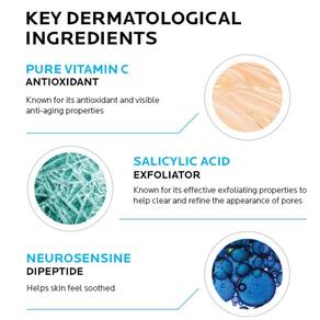 Sérum facial La Roche-Posay Pure Vitamin C com ácido hialurônico e ácido salicílico, sérum facial antienvelhecimento para rugas e textura irregular da pele para clarear e suavizar visivelmente. Adequado para peles sensíveis