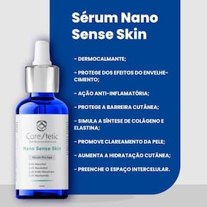 Sérum pro age nano sense skin versátil, formulado com quatro elementos ativos que, em conjunto, aprimoram a integridade da barreira epidérmica. Complementam-se e fortalecem os efeitos antioxidantes, combate ao fotoenvelhecimento, estímulo à síntese de colágeno, efeito dermocalmante, além de reduzirem a oleosidade e hiperpigmentação. Adequado para peles sensíveis. Elementos ativos: bakuchiol / resveratrol / niacinamida / ácido hialurônico Bakuchiol - retinol vegano: propriedades dermocalmantes, estimula a produção de colágeno e a renovação celular, oferecendo benefícios antienvelhecimento. Melhora a firmeza da pele, atenua linhas finas, rugas e condições de hiperpigmentação. Atua como regulador de sebo e , contribuindo para a melhoria da pele propensa à acne. Penetra rapidamente até as camadas mais profundas da pele, liberando e internalizando o ativo nas células. Resveratrol: combate o oxidativo natural, agindo como rejuvenescedor da pele ao ativar sirtuínas, proteínas que regulam o envelhecimento. Antioxidante que combate a flacidez, reduz rugas e manchas, além de atuar contra o fotoenvelhecimento. Niacinamida: composto multifuncional com diversos benefícios para a pele. Aumenta a biossíntese de ceramidas, melhora a barreira epidérmica, particularmente degradada em peles maduras, aprimorando textura e tom. Reduz linhas finas, rugas e hiperpigmentação. Ácido hialurônico: ação hidratante, preenchendo o espaço intercelular e conferindo um aspecto rejuvenescido à pele por meio da intumescência do ativo por água. Torna a pele mais suave e macia, agindo tanto na superfície quanto nas camadas mais profundas. Principais benefícios: Efeito dermocalmante Antioxidante Proteção contra os efeitos do fotoenvelhecimento Ação Proteção da barreira cutânea Estimulação da síntese de colágeno e elastina Efeito clareador da pele Aumento da hidratação cutânea Preenchimento do espaço intercelular Modo de uso Uso diário, manhã e noite. Com a pele limpa e seca, aplique 5 cinco gotas do produto no rosto e pescoço, espalhando até completa absorção. Use protetor solar heal sun fps60 após o uso diurno. Composição Aqua água , glycerin glicerina , sodium hyaluronate hialuronato de sódio , bakuchiol bakuchiol , resveratrol resveratrol , niacinamide nicotinamida , dicaprylyl carbonate carbonato de dicaprilil , cellulose gum carmelose sódica , sodium, benzoate benzoato de sódio , potassium sorbate sorbato de potássio , parfum perfume , disodium edta edetato dissódico di-hidratado .