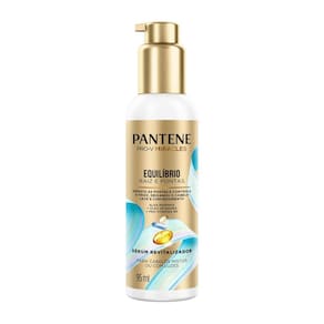 Características. Sua fórmula exclsuiva sem sal, derrete nas mãos e penetra profundamente nos fios promovendo hidratação, suavidade e controle de frizz para as pontas secas, ao mesmo tempo em que mantém o movimento e leveza dos cabelos. Além disso, sua fórmula com ingredientes altamente hidratantes e purificantes é segura para cabelos com luzes, deixando-os soltinhos, frescos e brilhosos. Serum cabelo? Pantene Equilibrio!
