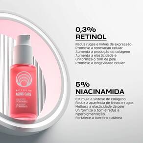 Sérum Rejuvenescedor Aging Care Se´rum rejuvenescedor com Retinol e sinergia exclusiva de ativos. 95% mais cola´geno apo´s 4 dias de aplicac¸a~o. Voce^ na~o pode voltar no tempo, sua pele sim! Com a m