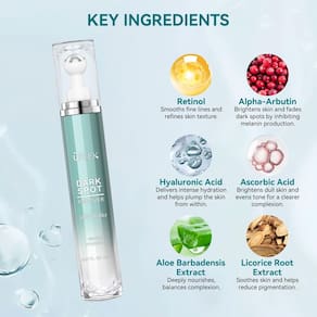- Fórmula avançada e poderosa: Este sérum de brilho com correção de manchas escuras é enriquecido com ácido hialurônico, retinol e extrato de raiz de alcaçuz para hidratar profundamente, iluminar a pele e desbotar a pigmentação.