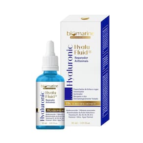 Biomarine hyalu fluid 11 é um reparador antissinais ultra inovador e potente porque é composto por 11 moléculas diferentes de ácido hialurônico, capazes de atuar desde as camadas mais superficiais até as mais profundas da pele, reparando os sinais de envelhecimento e preenchendo as linhas de expressão.