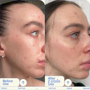 - Seu novo hidratante diário – Nosso soro de peptídeo triplo três em um, contendo caule de cacto + ácido hialurônico, trabalham juntos para aumentar e firmar enquanto suaviza visivelmente as linhas finas. Dose após a dose, esta fórmula de soro hidratante estimula a pele a se sentir e parecer mais saltitante e jovem.