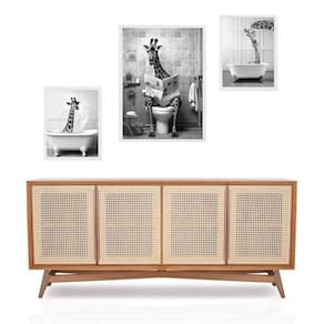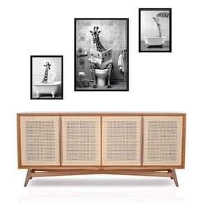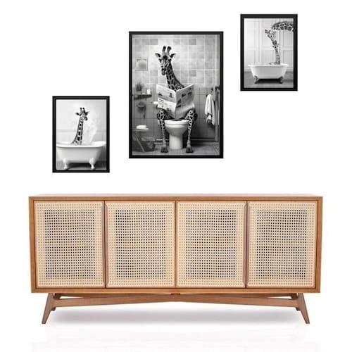 Set 3 quadros girafa no banheiro - com vidro Cor: moldura branca Informações do produto tire todas as suas dúvidas no descritivo abaixo: decoração para quarto, sala, cozinha, escritório, área gourmet e muito mais. Chega de paredes vazias medidas - kit composto por 3 quadros, sendo 2 quadros com 24x33cm e 1 quadro com medida 33x45cm. Material do papel - papel fotográfico brilhante de altíssima resolução acabamento - todos os quadros são acompanhados de vidro para proteção da imagem. - moldura em madeira maciça na cor preta ou branca conforme produto escolhido e pendurador . - os quadros são embalados de forma segura com plástico bolha com camada dupla de acordo com o tamanho dos quadros. Garantia - garantia de 3 meses. Meu quadro chegou. Como posso fixá-lo Você precisa apenas de um martelo e um prego, pois os quadros já vão acompanhados de penduradores. Esta é a forma mais indicada. Como posso limpar meu quadro A limpeza é feita como um móvel comum da sua casa. Apenas um pano seco ou espanador são suficientes para tal