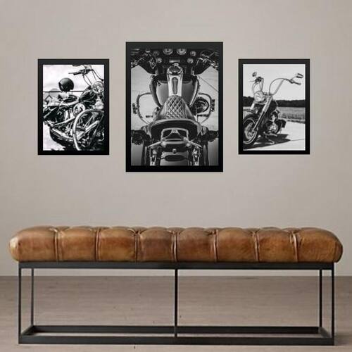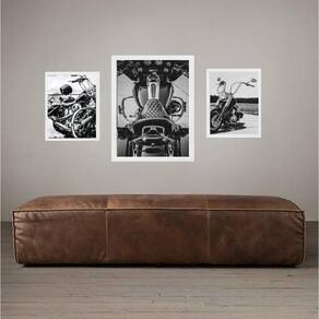 Set 3 quadros motocicletas vintage Cor: moldura preta Informações do produto tire todas as suas dúvidas no descritivo abaixo: decoração para quarto, sala, cozinha, escritório, área gourmet e muito mais. Chega de paredes vazias medidas - kit composto por 3 quadros, sendo 2 quadros com 24x33cm e 1 quadro com medida 33x45cm. Material do papel - papel fotográfico brilhante de altíssima resolução acabamento - todos os quadros são acompanhados de uma película de acetato para proteção da imagem. - os quadros são embalados de forma segura com plástico bolha com camada dupla de acordo com o tamanho dos quadros. - de 3 meses. Meu quadro chegou. Como posso fixá-lo Você precisa apenas de um martelo e um prego, pois os quadros já vão acompanhados de penduradores. Esta é a forma mais indicada. Caso prefira, você pode utilizar uma fita dupla face neste caso, sugerimos de alta qualidade para evitar que descole e seu quadro caia . Como posso limpar meu quadro A limpeza é feita como um móvel comum da sua casa. Apenas um pano seco ou espanador são suficientes para tal Marca: Não Informado
