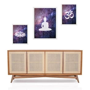 Set 3 quadros zen buda universo - com vidro Cor: moldura branca Informações do produto tire todas as suas dúvidas no descritivo abaixo: decoração para quarto, sala, cozinha, escritório, área gourmet e muito mais. Chega de paredes vazias medidas - kit composto por 3 quadros, sendo 2 quadros com 24x33cm e 1 quadro com medida 33x45cm. Material do papel - papel fotográfico brilhante de altíssima resolução acabamento - todos os quadros são acompanhados de vidro para proteção da imagem. - moldura em madeira maciça na cor preta ou branca conforme produto escolhido e pendurador . - os quadros são embalados de forma segura com plástico bolha com camada dupla de acordo com o tamanho dos quadros. Garantia - garantia de 3 meses. Meu quadro chegou. Como posso fixá-lo Você precisa apenas de um martelo e um prego, pois os quadros já vão acompanhados de penduradores. Esta é a forma mais indicada. Como posso limpar meu quadro A limpeza é feita como um móvel comum da sua casa. Apenas um pano seco ou espanador são suficientes para tal