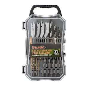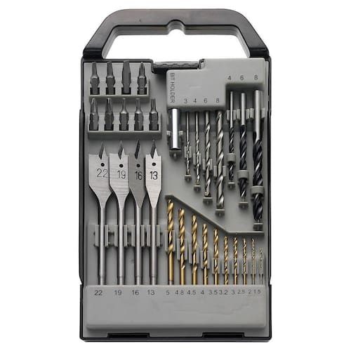 CARACTERÍSTICAS: 9 pontas de cromo vanádio, 3 brocas HHS, 4 brocas concreto com ponta de carboneto, 4 brocas espada para madeira, 10 brocas para madeira e 1 porta ponta.