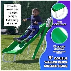 Componentes: 2 balanços moldeados, 1 balanço moldado em pé, 1 balancim romano 2 pessoas, 1 gangorra, 1 escorregador ondulado de 1,52 m
