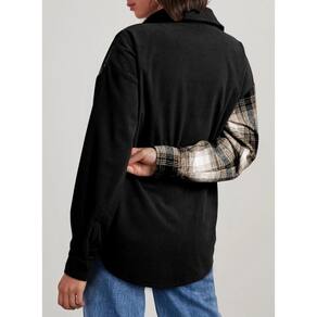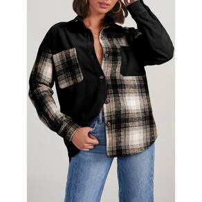 Astylish Blusa feminina de veludo cotelê color block manga comprida abotoada, Preto - Material: camisa de veludo cotelê astylish é feita com tecido de alta qualidade. Tecido de veludo cotelê super macio e leve para mulheres - Característica: tecido de veludo cotelê; bloco de cor xadrez; fecho de botão frontal; dois bolsos no busto; mangas compridas com punhos de botão; estilo namorado; gola virada para baixo; camisas folgadas - Combinado: esta camisa color block é fácil de combinar com uma variedade de regatas; cami; saias; jeans; shorts de cintura alta; sapatos de salto alto; colar e brincos; dando a você um visual atemporal e elegante - Ocasião: esta jaqueta xadrez de veludo cotelê é a escolha perfeita para o dia a dia; férias; viagens; ambiente de escritório ou trabalho; casa, encontros. É um presente ideal para amigas; mãe; esposa - Conteúdo da embalagem: uma camiseta feminina. Cuidados com a roupa: lavagem à mão recomendada, lavar à máquina com água fria, não usar alvejante
